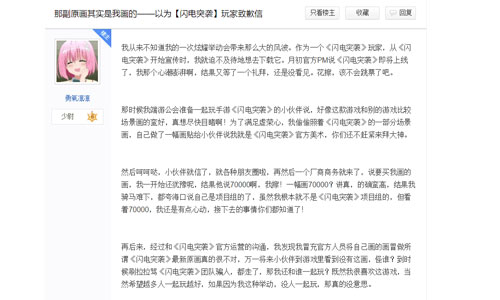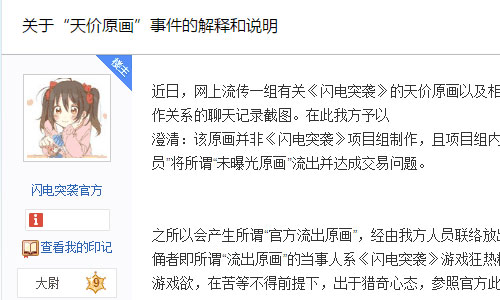 近日,网络流传一组关于《闪电突袭》天价购买原画的聊天记录,疑似游戏研发与其他公司达成私下交易。事件爆发12小时内,官方PM站出澄清:《闪电突袭》原画场景并未外露,网络上爆出的“天价原画”并非《闪电突袭》官方所有原画,相应的“聊天记录”以及意图卖画者并无事实根据。 同时,《闪电突袭》官方运营及时联系到那位名为“萌萌”的“原画提供者”,经过沟通得知,该“原画提供者”为《闪电突袭》游戏粉丝,因喜爱《闪电突袭》这款游戏,又听闻该游戏即将全平台内测,在焦虑等待下,基于《闪电突袭》的画面创作风格,自行制作了一副所谓原画,并在朋友圈内转发求赞。结果引来另一新建军武题材手游团队索画,由于被对方出价吸引,所以假借《闪电突袭》之名正在与另一新建军武团队达成合作。 在《闪电突袭》运营人员的耐心沟通下,该玩家承认了冒借《闪电突袭》之名做法不妥,作为一个《闪电突袭》粉丝,自制的原画在一定程度上误导了《闪电突袭》的玩家好友,让等待这款游戏的玩家莫名多了一份关于所谓新场景的期待,一旦《闪电突袭》游戏上线,如果并没出现完全一样的场景以及内容,难免让玩家产生上当受骗之感。 从“天价原画”事件到官方运营介入沟通,再到该粉丝承认错误,《闪电突袭》采取了合适的公关,在24小时内将该问题平复解决,实现了一次线下的“闪电战”。 再观《闪电突袭》本身游戏品质,《闪电突袭》是一款军武题材策略手游。一改目前常见的3D游戏画面风格,采用最为纯熟的2D游戏画面,通过精致的阴影涂层覆盖,令2D画面多了几分3D质感。沙盘式的战役场景,全二战时代的经典沙场,瞬息之间点起雄性荷尔蒙。 鹰派名将汇聚,阳刚集结,弘扬的是刚烈与不羁。粗野喘息的铁甲坦克,透过屏幕而出的机械柴油味,燃烧在战场上的汗水与坦荡,滚滚而出的强硬压痕,爆炸瞬间爆发的冲击力,巨大而极具感官刺激的弹坑。战场烽火,金戈铁马,玩的是游戏,感受的确实烈血沙场的百战不息。 关于闪电突袭 《闪电突袭》2016年火爆来袭!《闪电突袭》带你重回历史战场,谱写出光明与黑暗的传奇赞歌。火爆激情的战争场面,凶猛残酷的钢铁战车,用铁血意志铸就不屈战魂。科技和战争的紧密联合,让你成为时代新霸主。强化、改装、指挥官培养、竞技几大元素,让你成为战场上的枭雄,在新的欧亚大陆里书写历史。FIRE!带上你的装甲部队一起同我征战吧。 关于冰穹互娱 冰穹互娱,游戏圈新锐发行力量,立志于成为全球领先的数字互动娱乐内容供应商。目前已发展成融合游戏发行、应用分发、游戏自研,电竞,泛娱乐等多领域持续发力和融合的全方位立体化的集群式互动娱乐企业。目前冰穹互娱已拥有6000万的注册用户,并以发行多款在业内知名的手游产品,旗下现象级独立游戏《贪婪洞窟》以优秀的制作水准,深度的游戏玩法,获得苹果精品游戏推荐,在游戏圈刮起一股独立游戏旋风,引导了整个2016年的独立游戏风向标,被誉为“国产独立游戏之光”。冰穹互娱将秉持“精心创造,快乐未来”理念,为游戏玩家带来更多精品游戏,体验精彩游戏生活。 了解更多相关信息,请前往http://sy.yzz.cn/ku/sdtx/ |