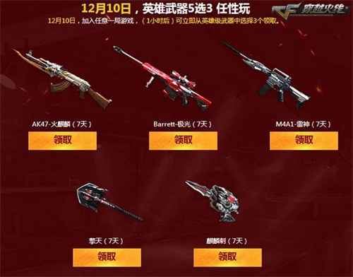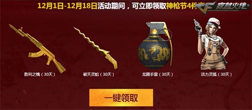 2016年12月1日至18日,穿越火线推出系列重磅福利活动,年终盛典“神枪节”火热来袭,听说有超豪华武器阵容,更有超良心福利大回馈,现在,就一起来看看吧! 活动专属页面:http://cf.qq.com/cp/a20161122sqj/index.htm?e_code=283228 王者武器大放送 多款极品任意抽 许久没有与大家见面的王者武器抽奖活动再度来袭,25款顶级武器随机抽取,更有王者之心、王者之魄等五款永久王者武器全部免费送,中奖率超高! 英雄武器任性玩 化身土豪超简单 这次神枪节,官方诚意满满,连英雄武器都开始任性起来了!AK47-火麒麟、Barrett-极光等五款英雄武器给力登场,这次不是抽奖,更不是只送一款,而是从五款英雄武器中任选三样,记住,是任选三样,由你决定!也就是说AK47-火麒麟、M4A1-雷神、Barrett-极光三款英雄武器仅需一次活动即可同时拥有,超良心福利只等你来! 神枪四件套来袭 精选武器陪你嗨 谁说套装一定没极品?神枪节四件套全面升级,胜利之魄、破天灵蛇、活力灵狐等精选道具全在这里,这样的豪华礼品套装你还会再舍得扔仓库吗? 五倍经验等你领 永久戒指随意送 想升级?来神枪节!高倍经验神枪节专享,最高五倍经验嗨翻天!还有八周年永久纪念戒指倾情赠送,只要在指定时间段内连续两天加入游戏一局或活动期间累计任意3天加入游戏一局,就能把永久纪念戒指带走! 除了以上这么多给力活动,还有掌上穿越火线APP、会员平台等特权礼包等你来拿,多平台献礼,福利爆棚!畅玩穿越火线,让你射击更爽快!与我们一起相约年终盛典——神枪节吧,不见不散哦! 更多详情请关注: 穿越火线官方网站:http://cf.qq.com 穿越火线官方微博:http://weibo.com/cf2015 穿越火线官方论坛:http://cf.gamebbs.qq.com 关于腾讯游戏 腾讯游戏,全球领先的游戏开发和运营机构,国内最大的网络游戏社区。以“用心创造快乐”的理念,腾讯游戏通过在多个产品细分领域的耕耘,对多元化四大平台的打造,致力为玩家提供“值得信赖的”、“快乐的”和“专业的”互动娱乐体验。 腾讯游戏,用心创造快乐! |