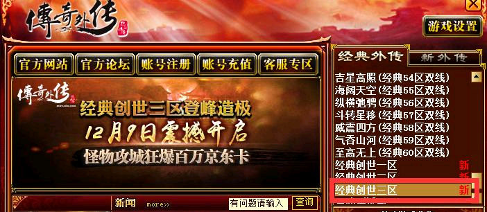 经典三职业强势回归传奇外传复古版,打造PK爽,升级快,人人有钱赚的散人天堂! 《传奇外传》经典创世三区将于12月9日为大家带来一大波惊喜:怪物攻城狂爆百万京东卡! 新服版本大刀阔斧的砍掉了很多倍受玩家争议的收费系统或模块,且新版本无强化技能、无转生、无灵兽等经典玩法,触动着无数玩家内心的回忆,旨在还原游戏本质,缩小差距,为大家呈现出更多的PK激情! 开区信息: 《传奇外传》 经典创世三区:登峰造极(双线) 12月9日14点火爆开启! 盛大游戏传奇工作室“怪物攻城狂暴百万京东卡”活动在《传奇续章》新区开启后,反响热烈,玩家们情绪高涨!为了让这份惊喜能传递给更多的玩家,人人都有机会赢取京东卡,我们将只采取通过怪物攻城的方式暴落:简单、粗暴、直接、刺激!玩家最终兑换到的京东卡,面值最低50元起。 活动名称:怪物攻城狂暴百万京东卡 活动范围:《传奇外传》经典创世三区 活动时间:12月9日—12月22日 新区玩家之间的差距小,大家都是从零开始,普通玩家打京东卡的机会就更高了。白野猪军团已经携带百万京东卡,蠢蠢欲动,兵临城下!考虑到在开区前几天,普通玩家肯定还打不死白野猪,因此我们会适当调整怪物难度,以适应普通玩家的程度! 赶快加入这一场激情厮杀吧,全天候多场次,无门槛全凭实力!1人可获多张京东卡! 尽情狂欢吧,每场怪物攻城我们都为大家准备了充足的京东卡! 打开《传奇外传》客户端,选择经典创世三区,进入游戏。 怪物攻城时间表: 注:参加“怪物攻城爆京东卡”活动的玩家,不会直接爆落京东卡,我们用“京东卡凭证”来暂时代替,但拿到凭证就意味着你已经拿到了京东卡,只是需要经历一个兑换的过程。 【花钱最少 赚钱最多】 此版本中,将删除强化技能、转生、灵兽等倍受玩家争议的成长系统,化繁为简让成长线更清晰,让高峰对决来的更快,更猛! 【经验靠打 边升变赚】 该版本PK更激情,源于玩家升级数据更平稳,玩家之间差距小。聚灵珠(空)可免费领,练级赚钱两不误。在指定地图,聚灵珠方可吸收经验值,坚决杜绝工作室,保障真实玩家获得最大的利益。 【鉴定出世 装备再升级】 打怪掉宝作为传奇游戏最吸引人的一大特色,也将在新服版本中带来更惊喜的表现!为了让爆落更具激情,重磅推出装备鉴定!圣战以上的装备全部值钱。只要打到圣战以上的装备,就可以对其鉴定,不仅可以鉴定出金刚石,还有机会给装备赋予丰富的鉴定属性,让极品触手可及! 通过装备鉴定,至少可获得金刚石。金刚石可用来抽取和升级武器。在新服中,玩家将享受最放心的武器升级系统,全力保障升级过程中武器不会碎,失败仅收取金刚石。 升级武器示范案例如下: 【经典地图 超爽体验】 还对复古地图烟花地图进行了改版,超高的性价比将引爆新服热点!在烟花地图中,不仅聚灵珠的累积经验将翻倍,而且还有机会获得大量的祝福油鉴定凭证、书页鉴定凭证、神秘鉴定凭证、高级装备等! 全新版本打造最激情升级版传奇,12月9日《传奇外传》新区荣耀开启! 激情再临,更有福利看的见的打怪爆京东卡活动等你来玩!经典传奇!再创辉煌! |