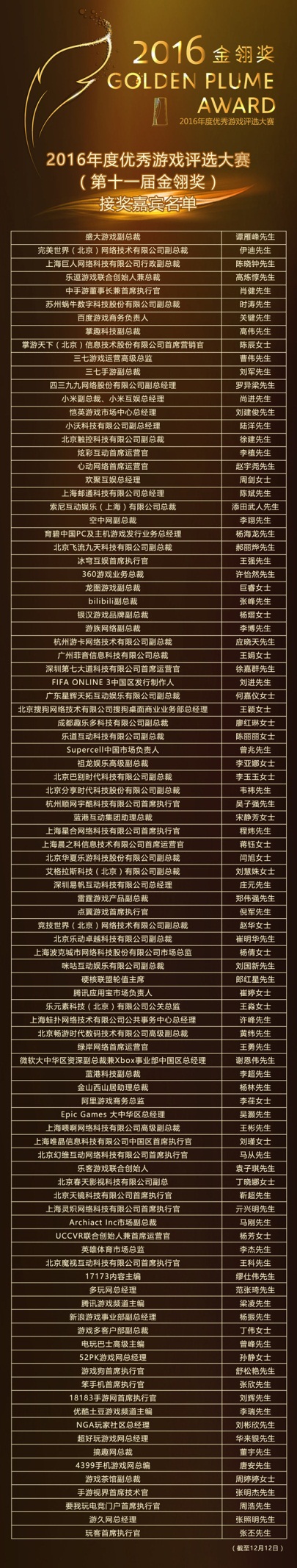 双十二报名有礼!2016厦门中国数字娱乐产业年度高峰会VIP嘉宾阵容