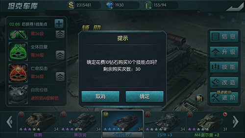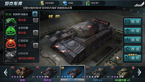 《闪电突袭》战场上,坦克怒气值满了以后会施放坦克技能。副本中最多上阵三个坦克,而敌方坦克源源不断地攻来,所以坦克的怒气值很容易爆满,技能释放的频率还是相当高的,因而坦克的技能要认真对待。 《闪电突袭》中每辆坦克都有四个技能。技能需要解锁,技能解锁的前置条件为坦克进阶等级。第二、三、四个技能的解锁分别需要坦克进阶到C级、B级、A级。 坦克技能解锁以后就可以升级坦克技能。升级坦克技能可以提高技能的属性值。比如“十字军”坦克的第三个技能“亡命反击”,技能描述为“十字军坦克用必死的决心鼓舞友军士气,在其阵亡后,受其鼓舞,全部友军的火力值得到大幅提升”,提升该技能可以提高火力提升百分比。 坦克技能升级消耗金币和技能点数。角色的技能点数每5分钟时间回复1点,最多回复到10点,技能点数满了以后不再回复。玩家也可以花费钻石购买技能点数。技能点数每天有购买次数上限。 坦克技能升级的上限受角色等级限制。技能升级消耗的技能点数和金币都容易获得,但35级以后人物升级缓慢,坦克技能升级速度也放缓下来。所以,升级是王道呀,小伙伴们! 了解更多相关信息,请前往http://sy.yzz.cn/ku/sdtx/ |