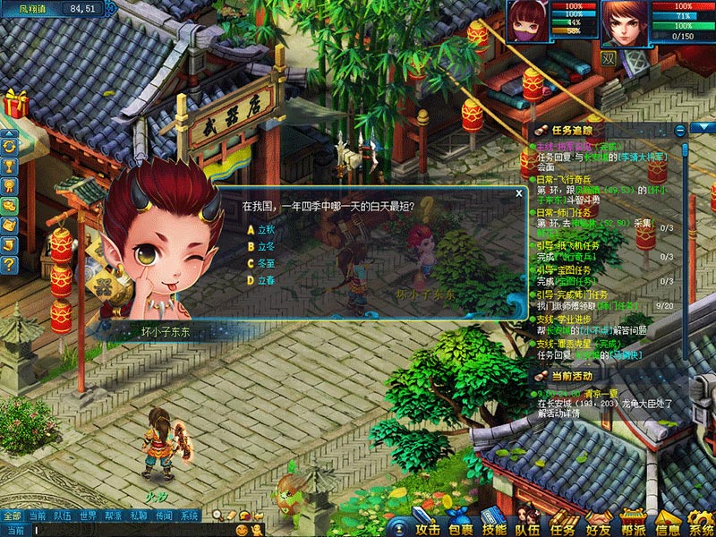《画江山》的飞行系统全新改版,赶走怪蜀黍,迎来小萝莉!结合烹饪系统与生活常识,飞行系统变得更加具有趣味性,还没有体验过的玩家们可要抓紧咯。 首先接受任务的NPC就从一个奶娃娃变成了小萝莉,视觉上变得更美好了有没有。这次玩家们的任务从寻找怪蜀黍变成了帮助小动物找食物,什么欢乐的松树,调皮的小猴,憨憨的野猪还有软萌的萝莉什么的,不...最后一个是我乱说的,总之要帮助这些小动物拿到香喷喷的烹饪,作为报答他们会告诉你纸飞机的下落。 说到找食物,方法有三。到长安城技能导师处学习烹饪技能,可以自己进行食物烹饪,但是要消耗一定的精力。另外从摆摊处也许能购买到你需要的食物,长安城的烹饪商人也有几种高额食材,比较价格进行购买吧! 还有一些很有商业头脑的玩家,在折纸鸢的小孩前面摆摊,所以说商机无限,等你发现嘛~ 完成了食物运送的任务,就会得到纸飞机的下落。你会惊奇的发现最后的大boss是各种不同性格的小正太,他们会一脸傲娇的出一些或常识或高深问题来考考大家,答错的话就要进入战斗了! 小编因为读书读的少,答题可真是费了好大劲儿!如果能够一次性答对问题,就不需要和正太们战斗啦,小萌妹会直接把纸飞机送给你哦~ 三十功名尘与土,八千里路云和月。金戈铁马,气吞万里如虎;壮志凌云,势拔山河似蛟。红袖赴琼阁,执手《画江山》! 《画江山》官方微博:http://weibo.com/hjsol/home?wvr=5&lf=reg 《画江山》官方微信:TQ_huajiangshan 了解更多相关信息,请前往http://www.yzz.cn/game/hjs/ |