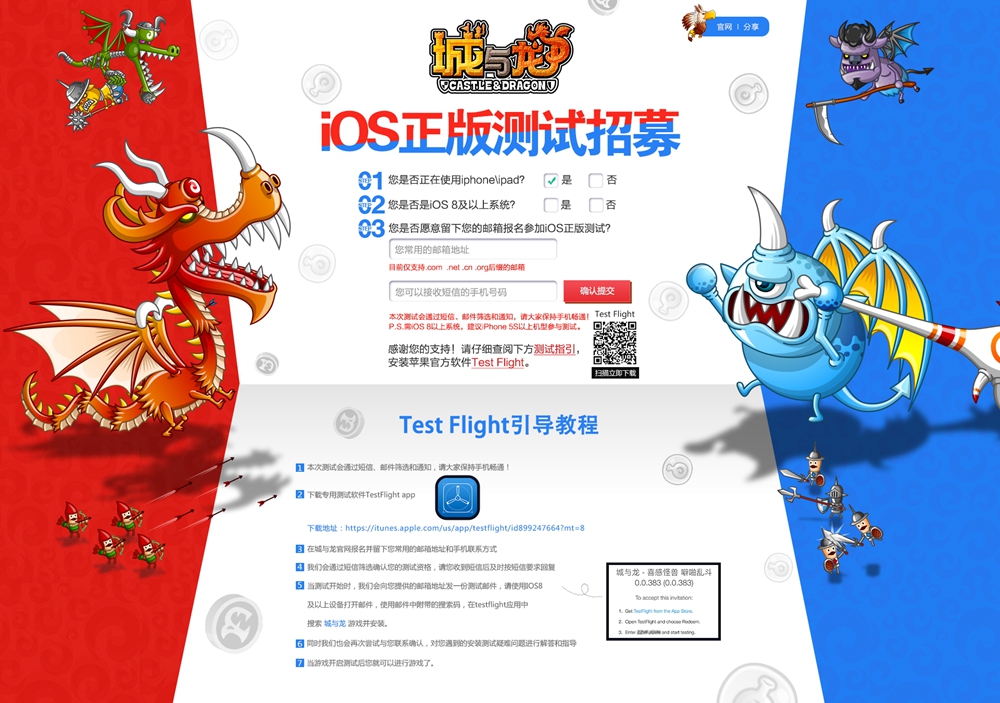 2017年新年的钟声已经敲响,新的一年每位玩家都有所新的期待吧。在Q1季度会有很多手游大作推出,首款日本手游即与中国玩家见面,那就是搞怪攻城对战手游《城与龙》!《城与龙》将于1月10日开启国服噼啪首测,本次首测无需激活码,安卓用户可以通过官网和UC应用商店下载游戏参与测试,苹果iOS用户可以登录官网获取苹果测试资格下载游戏抢先体验。 官网:cd.sdo.com http://v.17173.com/v_4_4045276/Mzc2OTEwNDc.html http://v.youku.com/v_show/id_XMTg2NTgyODE2OA==.html https://v.qq.com/x/page/j0353spxypd.html 宣传视频 【1月10日首测 礼包码预约即送】 《城与龙》1月10日开启国服首测,首测礼包码预约即送。玩家可以微信搜索关注公众号“城与龙”并成功预约即可领取礼包码。玩家们也可以通过各大媒体领取限量媒体礼包。 此次首测无需激活码,安卓用户可以登录官网及UC应用商店下载客户端参与测试,苹果用户需要通过官方苹果Test Flight测试招募获取测试资格并下载游戏抢先体验。 【与朋友一起来对战】 《城与龙》是日本ASOBISM公司出品的一款搞怪风格的攻城对战手游,在日本和台湾地区拥有500万用户,被苹果APP STORE推荐。这款游戏是一款与大部分网游风格不同的力作,搞怪丑萌的怪物风格,KUSO多样的策略玩法让人眼前一亮。《城与龙》对于新手十分友好,上手简单,画面明快,可爱夸张搞怪的风格适合各年龄层玩家。 《城与龙》是一个需要城堡里的人辛勤劳作,开发武器且提升角色能力的,最够攻入敌人城堡!!的游戏!《城与龙》一个人也可以开心的玩耍,还可以和好友一起合作攻打城堡,最大支持3对3对战等多种多样的战斗模式!根本停不下来!工作、进攻,攻打城池,城与龙准备开战!与朋友一起来对战! 【喜感怪兽 攻城乱斗】 《城与龙》最吸引人的特色就是丑萌画风的搞怪怪物,游戏里的兵种有近百种,每一种怪物都有自己夸张的形象,让人捧腹大笑。当你在攻城排兵布阵的同时,看到这些外观KUSO的怪物,就能够获得足够的喜悦,放松你的心情。《城与龙》还有丰富的服装体系,你还可以给这些喜感的怪兽升级,穿上各种有趣的服装。 如果你玩惯了那种打打杀杀、无聊氪金的手机游戏,那么在新的一年里,小编强烈推荐这款《城与龙》,国服首测,叫上朋友一起来对战! 了解更多相关信息,请前往http://sy.yzz.cn/ku/cyl/ |