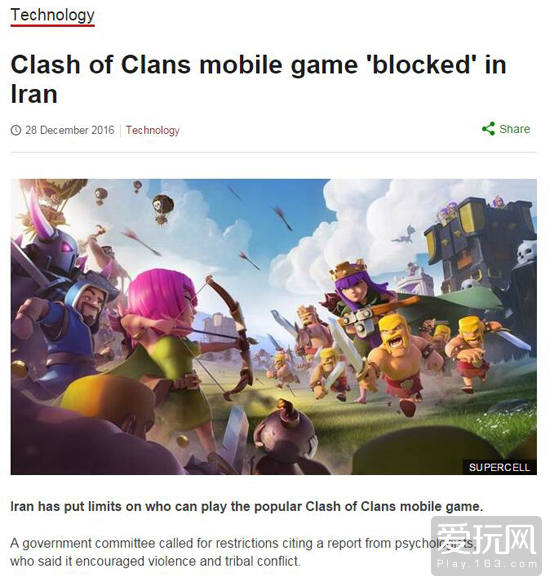 据英国BBC在当地时间12月28日的消息,Supercell旗下的策略游戏《部落冲突》(Clash of Clans)在伊朗被禁了。 原报道中称,这是由伊朗的一个网站过滤委员会发起的封杀提议,他们援引一份心理学家的报告称,游戏煽动暴力和部族的冲突。委员会发出警告,如果青少年沉迷其中,会影响家庭的和谐美满。这项决议已经在12月27日在伊朗全国开始执行。伊朗许多玩家开始遇到无法进入游戏的问题。早前,当地的媒体曾暗示《部落冲突》会在(玩家)年龄上设限,然而目前全年龄段的玩家都受到影响。 但据记者通过知情人士了解到,目前SuperCell内部工作人员已出面表示该消息不实,公司已准备进行辟谣,更多信息,还有待后续公布。 |