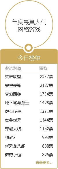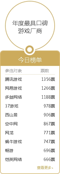 17173游戏风云榜进尾声 两大游戏厂商平分秋色