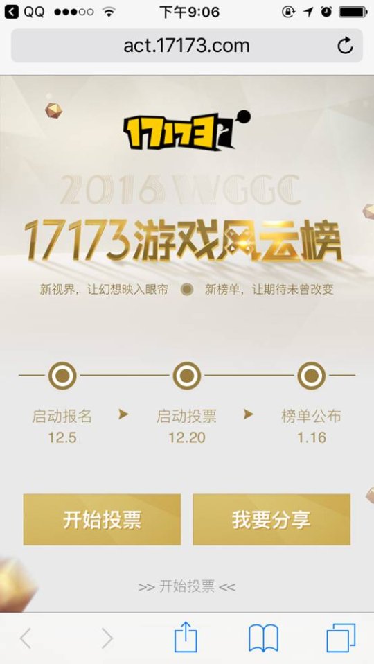 历时一个月的17173游戏风云榜投票活动即将于近日落下帷幕。相较于12月30日的票数统计,本轮统计数量有了明显增幅,截止至发稿日,共有四个榜单榜首票数突破2000票,远超去年同期,足见玩家对17173游戏风云榜的投票热情在逐年高涨。 竞品数量的增多,使榜单结果更加客观、权威。目前各榜单票数竞争趋于白热化,票数差距一再缩小。对于每一款上榜游戏来说,成王败寇只在一瞬间。 今年是17173游戏风云榜首次引进移动端投票,PC端和移动端双管齐下,为每一位热爱游戏的17173粉丝倾力打造公平公正公开的绿色投票通道。照顾到手机用户操作流畅性的问题,我们为手机端投票界面设计出了"滑动选票"的投票方式,折让各榜单中的竞品条目呈现的更加清晰,省去了需要反复跳转界面逐列投票的繁琐过程,完成全部十二个榜单的投票仅需一分钟。投票结束后系统将自动跳转至抽奖界面,玩家可以在投票后随机抽取游戏外设及iPad Pro、Q币等奖品。玩家不仅可以在手机端履行投票权,还可以将投票页面一键分享至QQ、微博及其他主流社交媒体。在手机端投票将对票数结果产生200%的加成,快快将投票页面分享给更多热爱这个行业的玩家,让他们为自己心目中最喜爱的游戏投出神圣的一票吧。 下面我们来看一下截止至2017年1月8日"游你所选"榜单的得票情况: 腾讯游戏及其出品的《英雄联盟》或将成为本次17173游戏风云榜的最大赢家。截止至发稿日,《英雄联盟》在"年度最具人气网络游戏"及"年度最佳竞技游戏"两大榜单中暂列冠军位置。而腾讯游戏也暂时登顶"年度最具口碑游戏厂商"榜单首位,三大榜单所获票数总和超过5000票。足见《英雄联盟》这款精品游戏为厂商在玩家群体中带来的口碑和超高人气。同样在玩家中获得极高赞誉的网易游戏出品的手游《阴阳师》可谓是本次大赛的一匹黑马。上线不到半年的《阴阳师》凭借着浓厚的和式风味,华丽的声优班底和精致的人设迅速成为了能让无数玩家在闲暇之余爱不释手的游戏。网易因为这款大热游戏而在"年度最具口碑游戏厂商"榜单中列位第二,仅与冠军腾讯相差100多票。 值得注意的是,在"年度最受期待新游"榜单中,《我的世界》跃居首位,这款像素风的沙盒模拟游戏虽画面颗粒化严重,却因其丰富的游戏性而备受玩家关注。这是否意味着未来游戏开发的侧重点将实现从画面感到游戏性的转变?"年度最受期待手游"榜单中,手游《坦克世界闪击战》则因其媲美端游的视觉和玩法而暂居首位。 在所有新开启的榜单中,最受瞩目的便是与VR游戏相关的三大榜单。2016年被各大主流媒体誉为"VR元年",VR游戏市场在2016年的快速崛起有目共睹。年初便有专业的游戏大数据媒体SuperData预测2016年VR游戏市场规模或将达到51亿美元。17173游戏风云榜本着与时俱进,忠实反馈玩家意见,树立市场风向的职责,在本年度17173游戏风云榜榜单中加入更多与VR相关的内容。新增三大精品榜单"年度最受期待VR游戏""年度最具人气主机/PC VR游戏"和"年度最具人气一体机/移动VR游戏"力求从不同角度、不同层面给出玩家对VR游戏的意见。17173官方针对VR游戏榜单新设立特殊审核部门,甄选多款精品VR游戏,力求客观真实的反 应每一位玩家对这支游戏市场新生力量的建议与褒奖。我们希望能通过唤起玩家和行业内人士对VR游戏的关注度与热情,更好的促进VR游戏行业的良性发展。 距离投票结果公布还有六天。17173游戏风云榜已进入冲刺阶段,所有榜单的投票结果将在全部统计完毕后于1月16日正式对外公布。想了解2016年度游戏行业风向,就请持续关注17173游戏风云榜后续动态吧。榜单结束后我们将第一时间为诸位玩家报道。 玩家投票通道请点击 >> 移动端投票通道请扫码: 在投票的同时也不要忘记了来抽取我们为您准备的精美礼品: |