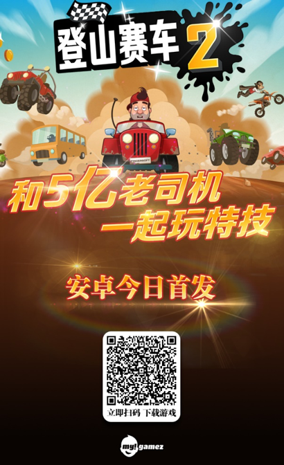 唯我乐园(MyGamez)今日宣布,2017年1月20日《登山赛车2》官方版将全面登陆国内安卓应用商店啦!赛车手比尔再度回归,传承前作经典元素,超越以往酷炫玩法,把前所未有的赛车冒险带给各位车手!即日起,下载游戏将有机会赢得炫酷数码大奖,还有千元话费等你赢!今年新春,快来和比尔一起赛到世界尽头吧! 唯我乐园(MyGamez)今日宣布,2017年1月20日《登山赛车2》官方版将全面登陆国内安卓应用商店啦!赛车手比尔再度回归,传承前作经典元素,超越以往酷炫玩法,把前所未有的赛车冒险带给各位车手!即日起,下载游戏将有机会赢得炫酷数码大奖,还有千元话费等你赢!今年新春,快来和比尔一起赛到世界尽头吧! 《登山赛车2》是全球用户超5亿的《登山赛车》正品续作,由芬兰三大手游开发商之一的Fingersoft倾力打造,是一款休闲物理赛车手游。 2016年12月,Fingersoft与唯我乐园(MyGamez)正式达成战略合作,于2017年1月将这部燃爆全球的经典赛车续作带到了中国。据悉,《登山赛车2》在海外市场的表现远超前作。上线首月,则登顶美国苹果应用商店全品类APP下载榜Top1,并夺得全球60大国家下载榜冠军,覆盖233个国家,全球好评超百万! 而今,《登山赛车2》即将为中国玩家带来震撼的赛车特技体验,也将它独具一格的物理玩法分享给更多赛车手们。赶快加入让人欲罢不能,独一无二的2D休闲物理赛车手游《登山赛车2》吧! 《登山赛车2》推出的崭新花样赛道,免费体验,轻松出赛。游戏中,纽顿比尔再度归来,驾驶爱车奔向从未涉足的新世界。比尔已经做好准备挑战全球多人杯赛,竞逐世界冠军。而在竞赛之余,他依旧会驾车翻越山岭,众多经典玩法将继续陪伴大家尽情玩耍!还能帮比尔改良赛车组件,在风光优美的赛道上与多位玩家进行比赛,使用物理操作击败对手,赢得宝箱,开启丰厚大奖,解锁超酷新车!? 相比前作,《登山赛车2》的画面品质更为细腻,无论是操作界面、物理操控还是效果体验,更加逼真呈现。车手们在追逐对手的同时,还可领略田野乡村、现代都市等沿途风光和风土人情。同时,游戏新增了“杯赛模式”,让车手们可以相约朋友一起争夺荣誉;而丰富、拉风的车型,如吉普车、超级吉普车、平衡车等都将在《登山赛车2》中成为玩家们的座驾;还有百变行装车贴登场,让新老车手们动动手指就能为比尔搭配服装,装扮个性赛车;在车手们喜爱的赛车改良玩法上,游戏开放了包括引擎、悬挂系统、轮胎及4WD四重改良部分,属性升级更贴心。 唯我乐园(MyGamez)作为欧洲移动游戏内容集成商、渠道集成商及运营平台供应商,专注于为中国市场引进欧洲原创高品质移动游戏和数字电视游戏。旗下成功推出过《割绳子:魔法》、《登山赛车》、《不休骑士》、《涂鸦上帝》、《维京之斧2》、《疯狂动物季》等众多深受中国玩家喜爱的精品海游。 而就在不久前,唯我乐园(MyGamez)携手德国Flaregames发行了S级重磅手游《不休骑士》,成为同年内高次留高期待的3D休闲动作RPG精品游戏。而凭借专业的汉化团队和多年的行业经验,唯我乐园(MyGamez)已成为欧洲诸多知名游戏研发商青睐的合作伙伴。 2017年,Fingersoft期望通过与唯我乐园(MyGamez)协作,将《登山赛车2》这款风靡全球的经典手游带给中国玩家。而更多隶属全球移动游戏应用榜单上的S级大作、海外重磅IP作品已陆续在洽谈中,唯我乐园(MyGamez)将自今年起逐步带给玩家更多的惊喜。 《登山赛车2》即将上线,更多与该作相关的爆料和活动,敬请关注最新资讯! |