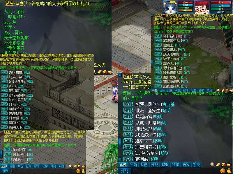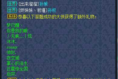 在网络世界里,许多腼腆的人都喜欢默默地玩游戏,而很少跟朋友们在世界频道上嬉笑打闹。对于这些所谓的潜水党,《画江山》总有办法收服他们,因为《画江山》可是有特殊的炸鱼技巧哦~ 【活动条件】 人物等级≥20级 【活动介绍】 1、每过一段时间系统会向所有玩家发布题目 2、在分线频道60秒内正确回答问题的玩家均可获得答题奖励 在《画江山》的世界里,有一项会在玩家们不经意间开始的活动,这个活动叫做世界答题。当系统提出问题之后,玩家们需要拿出自己的智慧,在分线频道之中回答出正确的答案。当然,不是每个答对的玩家都可以获得奖励,而是个别回答正确的幸运儿才可以获得哦!每次的问题都非常的简单,只需要玩家们拿出自己学习过的知识就能轻松回答正确,关键还在于你是否只是专注的打怪,而没有看聊天栏中的信息! 【友情提示】务必要在【世界】频道里回答问题,否则是不算数的哦! 三十功名尘与土,八千里路云和月。 金戈铁马,气吞万里如虎; 壮志凌云,势拔山河似蛟。 红袖赴琼阁,执手《画江山》! 了解更多相关信息,请前往http://www.yzz.cn/game/hjs/ |