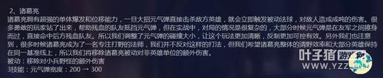 不过呢,宽度较小,混战中,诸葛亮还是能够很轻易地命中所要命中的目标。在没改之前,3技能的元气弹宽度是200,改之后宽至300,这意味着更容易被抵挡,不过伤害不变。