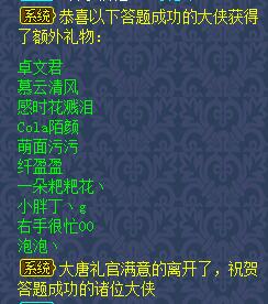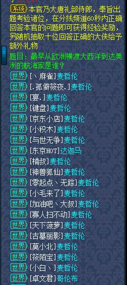 寒假过得很快啊,马上就到了开学季,还在念书的画友们寒假作业都完成了吗?想当年,小编上中学的时候,寒假作业这种东西总是留到最后几天才来赶,之前可是各种刷剧打排位同学聚会,浪的飞起,虽说这确实不是一个好习惯啦。不过事已至此,临时抱佛脚式的恶补一下也是有用的,总比荒废太久,以致于开学以后一脸懵逼要好些。 《画江山》作为一款有益身心健康的网游,当然是少不了随时给大家科普各种小知识的哦,没准儿,哪一次历史考试或者化学考试,就用上了呢。 【世界答题】 在《画江山》的世界里,有一项会在玩家们不经意间开始的活动,这个活动叫做世界答题。当系统提出问题之后,玩家们需要拿出自己的智慧,在分线频道之中回答出正确的答案。当然,不是每个答对的玩家都可以获得奖励,而是个别回答正确的幸运儿才可以获得哦!每次的问题都非常的简单,只需要玩家们拿出自己学习过的知识就能轻松回答正确,关键还在于你是否只是专注于打怪,而没有看聊天栏中的信息! 当然,盲目跟风可是不行的哦。比如上面这一道题,大部分人都回答了“麦哲伦”,可正确答案是“哥伦布”。这样一来,只有少数回答“哥伦布”的玩家才能拿到奖品。所以答题一定不能人云亦云,真理往往掌握在少数人手里。 【纸飞机任务答题】 纸鸢作为居家旅行的必备良品,需求量一直是很大的。在每天的纸飞机任务里,NPC都会问你一些“简单”的问题,如果答对了,就可以免去一番大战。 如果答错了,那NPC就会毫不客气地向你挑战啦,既然文的不行,那就来武的啦。 可见,知识就是力量,此言非虚。 【周末科举答题】 古语有云: 朝为田舍郎,暮登天子堂。 十年窗下无人问,一举成名天下知。 这些都是描述古代学子参加科举考试的名言,然而在《画江山》里同样有规模浩大的科举考试。 达到30级的玩家可以在星期天的下午14:00-16:00参与科举考试中的乡试和会试,在会试中取得优异成绩的玩家甚至还能在16:30-17:00参加殿试,直面唐皇李世民的亲自提问,充分体验当年古代书生求学的感觉。 相对于世界答题的突击检查和纸飞机任务的趣味小考,周末的科举考试可是一次对智慧的大试炼,毕竟题量一多,难度就上去了,想要出人头地,就必须提高答题的速度和准确率,到时候衣锦还乡,道具奖励自不必说,还能拿到科举专属称号,成为大家眼中的超级学霸,真是倍儿有面子! 三十功名尘与土,八千里路云和月。 金戈铁马,气吞万里如虎; 壮志凌云,势拔山河似蛟。 红袖赴琼阁,执手《画江山》! 《画江山》官方微信:TQ_huajiangshan 了解更多相关信息,请前往http://www.yzz.cn/game/hjs/ |