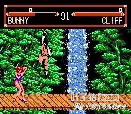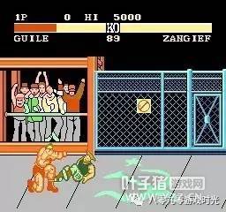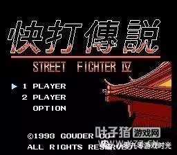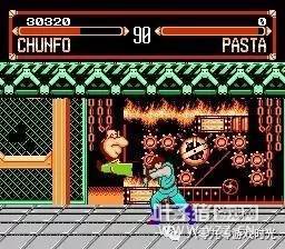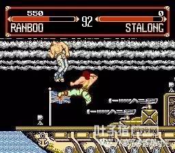 在“八合一”中还有另外一款格斗游戏,叫《快打传说》,虽然不是街霸,但是整体素质比“4人街霸”要强得多,比如音乐、动态背景、相对流畅的动作。游戏共有十位可选角色,可真正的角色只有五人,另外五个只是他们的“翻版”。其实这一招用得很拙劣,一方面游戏设计1P和2P无法选同一个角色,可是同一个角色却弄成两个人,虽然在选人画面的大头照中两人是有差别的,但在游戏里,两人除了衣着颜色不同外,实际上就是同一个人。 不知是哪个山寨厂捣鼓出来的东东,《快打传说》除了和尚与兔女郎外,其余三人的招式、动作都是取材于街霸中的隆和古烈。PASTA和CLIFF都是隆的“徒弟”,只是PASTA的气功和旋风脚被修改成上下晃动的,表面看上去很拉风,但攻击判定与CLIFF并没有任何区别。最恶搞的是那两个“军佬”,一个叫RANBOO,一个叫STALONG……,典型的普通话英语,一瞄便知是暗指兰博和史泰龙。兰博VS史泰龙,很有黄飞鸿对关德兴的趣感。他们的动作与古烈完全一样,唯一不同的是“后前+拳”不是音速刀,而是整个人缩成香肠那样向前突进,十足的废招。个人最喜欢的是和尚,大概是原创人物,造型有点儿像《龙珠》沙鲁篇中的天津饭,招式同样是气功和旋风腿,但动作看上去比隆更有霸气。 当时一直都以为《快打传说》是街霸的外传,受同时期的大人影响,小屁孩时脑子里还没有什么版权概念,这也是山寨版得以泛滥的原因,在短短的两三年内,各种各样的《街头霸王X代》充斥着FC卡带市场,绝大多数都是让人恶心的烂作,素质比《快打传说》和“4人街霸”要差得多,印象比较深刻的是那些出招简化版,只需同按AB键就能出招,大部分都是气功招,玩这样的街霸基本上就沦为气功大战,两个傻瓜在屏幕上斗发气功、互相抵消,就看哪个手先软下来。还有一些大杂烩版,把街霸、饿狼、龙珠,甚至连跟格斗毫不相干的马里奥都弄进来了,简直就是一团乱。