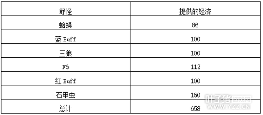 这一点是你在选择这个打野英雄的时候就应该考虑的,你应该很明白你将使用的这个英雄所擅长的是什么:有的英雄擅长gank,有的擅长反野,有的英雄前期强势,有的英雄能在后期Carry,而这些判断起来并不难。 如何判断英雄的gank能力呢,主要是根据三个因素: 1.控制能力,这可能也是最重要的,前期大家都是脆皮,被控住即使不被杀死也会交出召唤师技能; 2.爆发伤害,你能多快击杀敌人,前期爆发很低的话敌人完全可以迅速撤离或者等到己方打野的支援; 3.位移能力,位移能力很重要,因为就算你爆发很高、控制很强,如果接近不了敌人,就无法击杀他。 如果你控制足,爆发高且有一定的位移能力,如蜘蛛,或者拥有三点中的某两点,如盲僧这类,那么你就需要在前期帮助团战很好的打开局面。当然了,如寡妇这类有着特殊技能机制的英雄,即使没有控制与位移,但是其有着在敌人没有防范的情况下接近敌人打出超高的爆发的能力,也是在前期很好gank的英雄。 而有一些前期比较弱的打野英雄,比如蝎子,除非是敌人有很明显的破绽,不如是很难gank的,而这类英雄需要做的就是速6,快点迎来自己第一波的强势期,在前面不需要过多的gank,因为你没有很好的gank能力,战斗力低,经常gank反而浪费大量发育时间,延缓了自己第一波大招的时间点,从而导致整场游戏节奏的丢失。 金钱收益的对比 在文章的开头我们也提到过S7野区提供的经济经验收益大大提高了,我们来看下 野怪经济