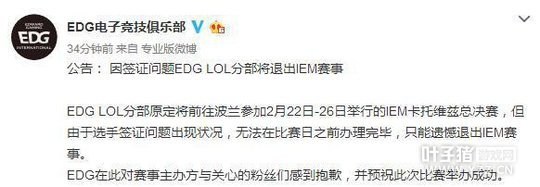 EDG官宣因签证问题退出IEM赛事