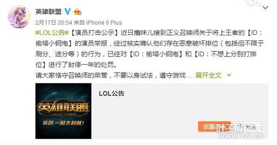 国服第一被官方封号 LOL国服开启单双排模式才几天,官方就封了一次高段位演员号,这无疑给了玩家一剂强心针。