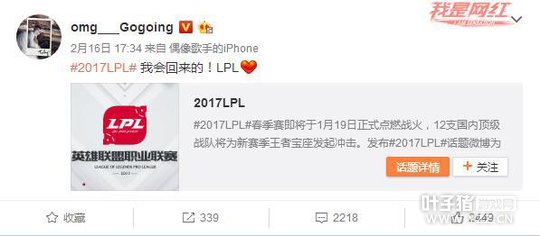 大哥大哥Gogoing欲重回LPL? 大哥发布微博数要回LPL