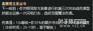 分析:单体技能能够打出很高的伤害,适合消耗性英雄,能增加他们的消耗能力,而且持续的掉血会影响一些技能或者装备的使用(盖伦的被动,夜刃的主动效果,五速鞋)。 优缺点: 让一些消耗英雄更加强力并且这个掉血伤害在对手送塔时很容易计算错误时间,但是爆发伤害不如雷霆高。 适合英雄
