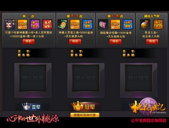 “她的睫毛弯的嘴角,用眼神对我拍照~“经过漫长的角逐,《桃花源记》美人大赛也渐渐步入尾声。感谢大家一路以来对美人们的支持与陪伴!送人玫瑰,手留余香,鲜花与掌声送给美人的同时,也送给了自己。 复赛收关 决赛正式打响 今天将开放决赛上传照片功能,各位美人要抓紧时间啦。早一些上传照片便能今早占据“主场”,赢得更多的关注与支持! 美人竞猜 冠军花落谁家? 与此同时,冠军竞猜也将同步开放。从今日起至3月30日结束,大家可以参与官方的美人冠军竞猜活动,猜猜哪位美人会赢得最终的冠军?! 温馨提示啦!至尊服战还有最后三天,官方YY8114每天都将同步开启服战解说直播,直播间不定时发放至尊激活码,结尾更有金券抽奖,一起来吧! 【关于桃花源记】 《桃花源记》是由深圳淘乐网络研发运营的公平免费回合制网游。千古名篇唤醒每位玩家“心中的世外桃源”! 极致细腻画面,还原桃源仙境;无商城公平交易系统,实现人人平等;多重声望与货币寄售系统,真正天道酬勤!更有百科全书式全系统玩法与丰富的个性休闲设置!立足公平游戏世界,打造玩家心中的世外桃源! 《桃花源记》官方网站:http://www.leyoo.com/ 《桃花源记》官网论坛:http://bbs.leyoo.com/ 《桃花源记》下载地址:http://www.leyoo.com/down.html 《桃花源记》新浪微博:http://weibo.com/leyoo 《桃花源记》腾讯微博:http://e.t.qq.com/THYJ_TaoLe 了解更多相关信息,请前往http://thyj.yzz.cn/ |