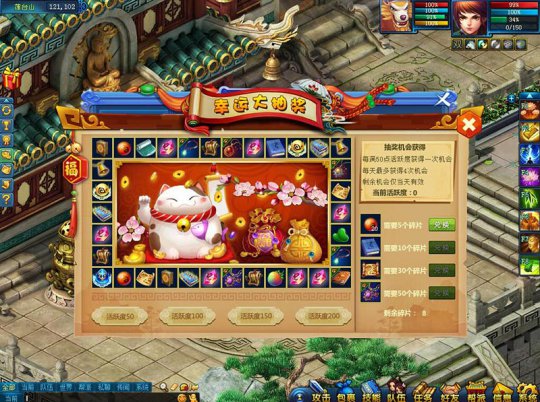 现代社会高节奏的生活让许多人练就了一身葛优躺的绝活,身子往沙发里一扎,感觉一下子就到了另一个神仙世界... 等等,你不能这样颓废!《画江山》为了拯救那些沉迷葛优躺的骚年,从而建立了一套活跃度奖励机制,只有动起来才能拿大奖哦~神兽之魂、珍兽之魂、高级技能书、宠物吊坠~各种豪华大礼应有尽有! 所谓活跃度,是玩家在游戏中完成各种任务时获得的积分,每日活跃度获得的方式有: 每日完成师门任务20次,当天最多可获得60活跃度。 每日完成封妖任务20次,当天最多可获得40活跃度。 每日完成悬赏任务20次,当天最多可获得60活跃度。 每日完成任务链满50次,当天最多可获得40活跃度。 每日完成挖宝10次,当天最多可获得30活跃度。 每日完成副本通关2次,当天最多可获得50活跃度。 每日完成帮派强盗5次,当天最多可获得25活跃度。 每日完成门派入侵5次,当天最多可获得25活跃度。 每日完成修炼经验满1000点,当天最多可获得50活跃度。 每日完成帮派跑商2次,当天最多可获得40活跃度。 每日每个角色最多可获得420点活跃度。 每获得50点活跃度即可点击进入幸运抽奖页面进行抽奖啦!看到这琳琅满目的奖品池是不是很激动呢? 每人每天最多可进行4次抽奖。(即每日总活跃度达到200)。使用活跃度抽奖时有一定几率获得碎片,当收集的碎片达到5、10、30、50时可换取对应的物品奖励重生丹*20、大修炼心得*1、江山宝图*1、紫宸吊坠*1。 所有活跃度只限当天有效,当天00:00系统将对活跃度进行清零,所以想要抽奖的小伙伴一定要及时兑换奖励!可不能白忙活了哦! 三十功名尘与土,八千里路云和月。 金戈铁马,气吞万里如虎, 壮志凌云,势拔山河似蛟。 红袖赴琼阁,执手《画江山》! 《画江山》官方微信:TQ_huajiangshan 了解更多相关信息,请前往http://www.yzz.cn/game/hjs/ |