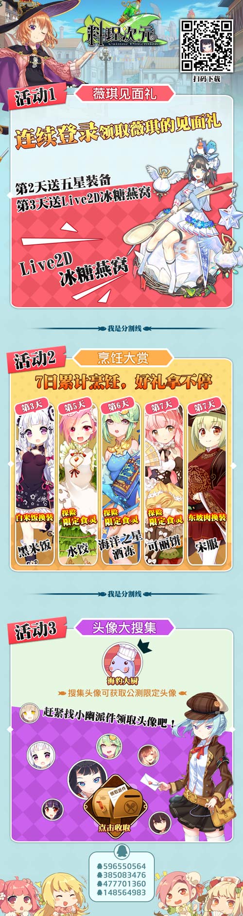 千呼万唤终要来!由触控游戏发行的日系卡牌收集养成手游《料理次元》将于明天(4月13日)正式开测,小伙伴们快去与心爱的美食娘一起守卫异世界!还没获取预约资格、下载游戏的玩家们千万不要错过,进入官方预约入口获取测试资格,另有超值限定礼包相赠! 官方预约入口链接:http://cook.coco.cn/yuyue 《料理次元》讲述的是身为吃货主角的你在误食一团黑暗料理后穿越到了一个被称为食灵次元的世界,在那里你肩负起了身为“主厨”的重任,带领着一班食灵萌妹与黑暗食灵作斗争,以阻止后者对食灵次元和人类世界的侵蚀。 《料理次元》不仅画面精美,角色食灵品质上乘,而且玩法丰富多样!既有有趣的主线剧情,让玩家在欢笑中体验异世界的冒险之旅;又有刺激隐藏BOSS和世界副本,让玩家告别传统手游只能刷怪升级的单调玩法;另有游历玩法和PVP玩法可以让喜欢互动对抗的用户找到归宿。 满足了品质玩家对手游的各项需求! 为庆祝明日测试开启,《料理次元》手游除预约页面送出的奖励外,还精心为广大小伙伴们准备了“薇琪见面礼”、“烹饪大赏”、“头像大搜集”3大活动!连续登陆有福利,累计烹饪赠豪礼,搜集图像送惊喜!不仅有五星装备、互动看板娘,还有限定食灵、食灵换装,公测限定头像等奖励……“色”“香”“味”俱全,让人欲罢不能! 触控科技还联合数十位海内外知名画师,参与设计了《料理次元》中超可爱的食灵萌娘们,角色完成度和立绘质量相当之高,有兴趣的玩家们可以到游戏新浪官方微博@料理次元先睹为快。拯救食灵次元世界的使命,就靠主厨大人你了! 官方预约入口预约入口链接:http://cook.coco.cn/yuyue 官方QQ群:596550564 官方微博: 了解更多相关信息,请前往http://sy.yzz.cn/ku/llcy/ |