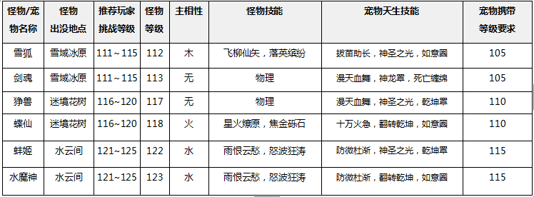 凡尘之外,昆仑之巅,鲲鹏邪念化形,北海众妖作乱,幻仙劫难重重,一时之间,灵宠幻生,魔剑锋芒,九天神龙幻化角逐, 风云骤变,战胜魔尊玄嚣已时不可待。 《问道》手游首部玄幻资料片“风云骤变”今日开启,扣人心弦的剧情和极富戏剧的任务设定,重新定义了修仙化羽的体验,除了剧情上,深受玩家期待的等级上限本次提升至115,随之全新练功地图加开,六大灵宠幻生,酷炫装备开启也在这次得到最详细的揭晓。 视频1:全新资料片视频 优酷:http://v.youku.com/v_show/id_XMjc3OTgwNDAyMA==.html?spm=a2hzp.8244740.0.0 腾讯:https://v.qq.com/x/page/y0506a7mxpm.html 玄幻剧情任务 随机获蓝金装备 “风云骤变”资料片以昆仑之巅三教修仙升道为背景,新增两大玄幻系列任务“幻仙劫”“鲲鹏变”。剧情上,幻仙劫讲述寻找,封印妖魔而历尽的重重劫难,鲲鹏变则讲述北海沙滩妖魔现身,鲲鹏化形,众妖作乱,但最终胜魔尊玄嚣的故事,故事情节曲折,代入感强;在任务设定上:两大任务分别由四个子任务连接,剧情相串,是伴随玩家从106-115级递增的一次性的系列任务,不可重复完成,验成长上:玩家可通过挑战两大任务,获得人物经验及随机蓝金装备奖励,装备种类从所有武器、头盔、衣服、鞋子中随机抽取,装备等级为110级。 等级上限突破115 全新练功区地图加开 此次新资料片开启了角色,宠物等级上限的突破,从原有上限109增加到115,并对110-115级重新设定经验成长,开启全新的角色及宠物历练成长,同时,新增的三张练功地图“迷境花树”“雪域冰原”“水云间”,场景设计上来的更加神秘与静谧,光影处理和笔触细节更显生动逼真,契合资料片玄幻的幻仙劫剧情。 新增五系装备 法力无界 110级对应新增的首饰、装备,传为神龙,仙女所遗留,内藏强大的法力,光芒万丈,对于战斗和成长功效无穷。 新增首饰:玉佩,项链,手镯,合成成功率为100%,属性上,分别为增加气血,法力和伤害。 新增的装备,满足金木水火土五系需要,包含:武器,帽子,衣服,鞋子。尤其在武器上,基本伤害将有一定幅度提升,获得方式基本为任务和怪物掉落,更重要的获取途径为“黑水晶属性重组”获得。 新增怪物卡6个,例如:超级雪狐卡、超级碟仙卡、超级蚌姬卡等,新增boss卡:超级罗刹王卡 。 六大灵怪化宠守护 新增六大怪物雪狐、剑魂、蝶仙、狰兽、水魔神、蚌姬出没全新的练功区。玩家可通过战斗中对怪物进行捕捉获得,并驯化为宠。 六大灵宠携带等级在105-115之间,在属性,携带技能,血量,法力,攻击,速度和成长上也各有差异。 新服加开 《问道》手游新资料片今日11:00开启,新服安卓[风云骤变]、iOS[武道无双]加开,全服红包,日常及试道翻倍,来还送月卡,新旅途,道友们一同开启! 新服活动1:全服红包 1.活动时间: 05月26日05:00:00-05月29日04:59:59 2.活动规则: a.角色等级大于等于30级 b.活动期间每天12:00、18:00、22:00系统会在天墉城刷新大量红包,每个时间段内会刷新10波红包,每波间隔15秒 3.活动奖励:开启红包时除获得数值、道具奖励外,还有几率获得珍稀的五行符咒 新服活动2:日常翻倍 1.活动时间: 05月26日05:00:00-05月29日04:59:59 2.活动规则: a.角色等级大于等于30级 b.在活动期间,玩家每天的随机一项日常任务会获得经验翻倍奖励; 3.活动奖励:经验翻倍; 新服活动3:幸运折扣券 1. 活动时间: 05月26日05:00:00-06月02日04:59:59 2. 活动规则: a.角色等级大于等于30级 b.活动期间内完成修行、师门、除暴、刷道、十绝阵任务将有机会获得幸运折扣券奖励 c.幸运折扣券可以在使用金元宝购买商城道具时享受打折优惠 3. 活动奖励:幸运折扣券 新服活动4:活跃送会员 1. 活动时间: 05月26日05:00:00-06月04日04:59:59 2. 活动规则: a.活动期间等级提升至60级以上 b.活动期间累计6天活跃度达到100 3. 活动奖励:7天位列仙班·月卡的体验资格 新服活动5:试道双倍 1.活动时间: 05月29日05:00:00-06月05日04:59:59 2.活动规则: a.角色等级大于等于60级 b.参与试道大会比赛的玩家,可以获得双倍的奖励。 c.选拔赛和决赛的奖励都翻倍。 3.活动奖励:经验、道行、武学、商城道具、召唤令·十二生肖 新服活动6:新服冲榜 1.活动时间: 05月26日05:00:00-06月09日04:59:59 2.活动规则: a.在新服开服后2周时间内将统计所有道友的排行榜排名情况 b.活动截至时,在个人排行榜任意子榜的前3名的道友可获得专属限时180天特殊称谓奖励 3.称号奖励: a.等级称号 一马当先 b.道行称号 得道高人 c.物伤称号 力敌千钧 d.法伤称号 法力无边 e.速度称号 风驰电掣 f.防御称号 铜墙铁壁 了解更多相关信息,请前往http://wd.yzz.cn/sy/ |