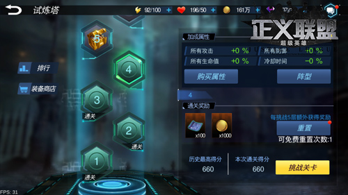 英雄之所以称之为英雄,最重要的一点是可以不断的突破自己,超越自己,在《正义联盟》中,试炼塔正是为了帮助英雄们突破自己,完善英雄装备而建设的,各位英雄可以在这里不断的突破自身极限,拿到心仪的装备,而且还能挑战各路反派精英,在排行榜上留下自己的名字! 试炼塔在“事件”玩法下,玩家可以在试炼塔界面看到自己当前所挑战的层数,每次通关后都会获得积分,积分可以在购买属性界面购买额外属性强化英雄,在挑战之前,玩家可以调整阵容,并添加助战队友,助战队友可以触发伙伴缘分,从而更好的提高英雄属性。 在试炼塔中,玩家可以逐层挑战守关怪物,每次挑战成功后,都会获得积分并强化属性,属性作用于下一层战斗,从而逐步挑战下去,每次挑战后都会获得装备兑换券和金币。 装备兑换券可以在装备商店兑换英雄所需装备,套装有加成,特定的装备会触发英雄的伙伴缘分,大幅度提高英雄的基本属性。除此之外,挑战一定层数之后,会开启精英挑战,直接和BOSS面对面。 试炼塔是帮助玩家更好认知自己英雄的地方,在这里玩家可以看到自己的英雄未来能够强大到何等地步,也可以通过不断的超越自我来购买英雄所属装备,英雄,去超越! 了解更多相关信息,请前往http://sy.yzz.cn/ku/zylmcjyx/ |