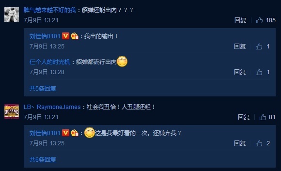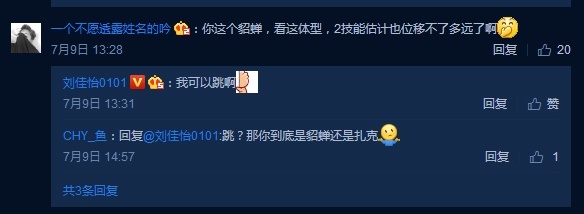 随着《王者荣耀》的日渐火爆,不少前LOL主播都选择转战王者荣耀,一年前身陷“代打门”的阿怡就是其中一位。近日,阿怡在微博上放出了一组自己COS王者荣耀中貂蝉的自拍,不料却引来网友们的疯狂吐槽。 先来感受一下阿怡COS貂蝉的画风: 看完之后小编想说一句...大家还是看看网友们是怎么评论的吧: 更过分的是,还有人放出了同样COS过貂蝉的主播张琪格的照片,真是没有对比就没有伤害! 在COS方面,主播们当然无法与那些职业Coser媲美,唯一能够取胜的可能就是自身的颜值了,不过相比起张琪格,阿怡在这方面的优势的确不明显...对于阿怡这次COS的“肉装貂蝉”,不知各位小伙伴是否满意? |