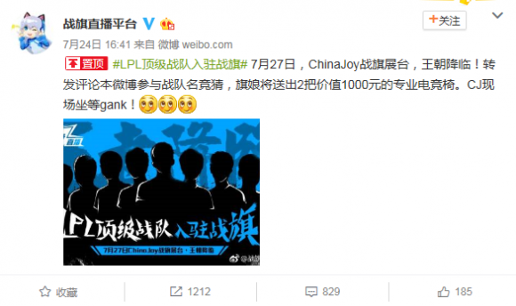 ChinaJoy战旗要现场签约LPL顶级战队 疑似EDG