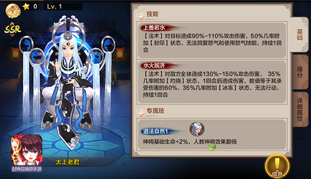“函关初出至昆仑,一统华夷属道门。我体本同天地老,须弥山倒性还存。”《封神召唤师》全新资料片火爆上线,“太上老君”将作为三教主中的首位SSR神将帮助召唤师们共同面对封神之路的重重险阻。作为具有开天创世与救赎教化的太上道祖,太上老君实力惊人,一定能成为召唤师们的强有力助手。 【登陆《封神召唤师》官网】http://fs.zilongame.com/ 【立即下载《封神召唤师》】http://fs.zlongame.com/download/ 【搜索《封神召唤师》手游官方微信公众号】fszhssy 全新SSR神将太上老君降临 在《封神召唤师》手游全新资料片中,玩家终于可以邀请大名鼎鼎、道法通玄的太上老君成为自己的神将了!太上老君是三清祖师之一,居住在玄都紫府?八景宫,隐遁无为,不问世事纷扰,号称「太上道祖」。曾与元始天尊联手封印蚩尤魔君,推算出末世鸿劫,因而主持了重铸封神榜的计划。太上老君自身抗暴率和伤害减免都非常高,生存能力极强,高级觉醒后的太上老君还有超高的减怒气抗性,怒气技能还能回复除自己以外己方怒气最低的3个友方70怒气!实力强大! 通玄道法大显神威 作为SSR神将,太上老君的技能足够让敌人谈之色变。普通攻击即有可能附加“封印”状态。强大的技能“水火既济”,不仅能对所有敌人进行强大打击,还可能随机附加“灼烧”和“冰冻”状态,或造成大量伤害或让敌人失去行动能力。专属技能“道法自然”还能为全体队友带来生命值百分比的增长!阵内的人教神将获得的效果还将翻倍!恐怖的控制和生存能力让太上老君成为实战能力最为强大神将之一! 关于《封神召唤师》 国风二次元手游《封神召唤师》,为玩家带来三维无缝全景大世界下的热血战斗!《封神召唤师》取材于经典神话题材“封神演义”,并融入东方传统文化中的“符咒”概念,玩家可以自由设定咒文,瞬时召唤名耀古今的封神神将,亲手布局战斗,主导神将进攻。神将的性格魅力随设定而异,与玩家的羁绊将和跌宕起伏的剧情密切相关。游戏与最强国漫《狐妖小红娘》达成强强联动,超人气主角“涂山苏苏”穿越而来展开妙趣横生的冒险。超大主城畅行无阻,24小时跨服语音畅聊等必玩特色,带你率先进击全景联动的手游时代! 《封神召唤师》手游官方网站:http://fs.zilongame.com/ 《封神召唤师》手游官方微博:http://weibo.com/u/6054103324 《封神召唤师》手游官方微信:fszhssy 《封神召唤师》手游官方QQ群: (安卓1群)461898223(已满)、(安卓2群)623330578 (ios1群)289506542(已满)、(ios2群)201740942 关于紫龙游戏 紫龙游戏是中国领先的网络游戏开发商和运营商之一。公司业务涉及PC以及移动游戏的研发与发行,秉承着“创造游戏,传递快乐”的宗旨,倾力打造拥有自主知识产权的高质量游戏精品,致力于成为集研发、运营、销售、服务于一体的全平台游戏服务内容提供商。 了解更多相关信息,请前往http://sy.yzz.cn/ku/fszhs/ |