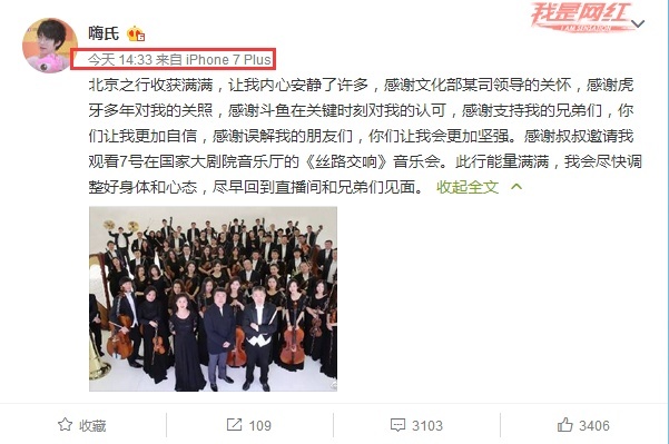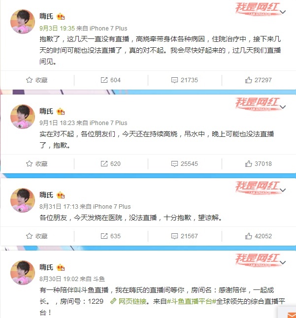 嗨氏称因病停播 微博却发北京之行打自己脸