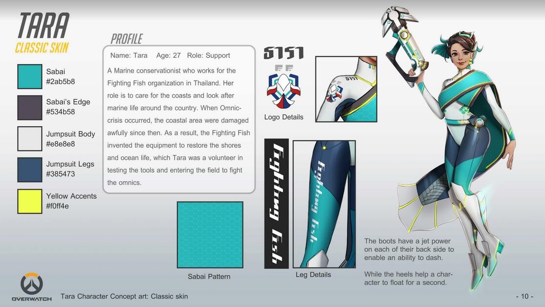 一名名为RM-Parfai的学生近期给《守望先锋》设计了一个新的泰国英雄,《守望先锋》游戏总监Jeff看到这个设计后在论坛回复道:“这太惊人了,你真是非常有天赋啊!这设计实在是让人心动”。 RM-Parfait表示自己为了设计这个新英雄花去了三个月的时间。到最后他完成了一个包括角色设计,独特皮肤以及新地图在内的完整项目。甚至他还专门写了一篇论文来介绍这个设计的思路。 RM-Parfait设计的是一位名叫泰拉(Tara)的来自泰国的女英雄,其名字在泰语中意为水。和她名字相称的是,泰拉是一名海洋保护主义者,在泰国一家鱼类保护组织工作。泰拉关心着海岸与海洋生物,当智械危机发生时,她所守护的领地遭到了破坏,于是她带着自己团队开始驻入,并制造设备来恢复原有的海洋生态。 更多设计细节: |