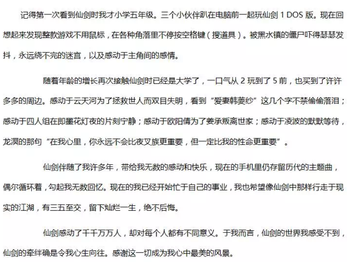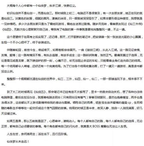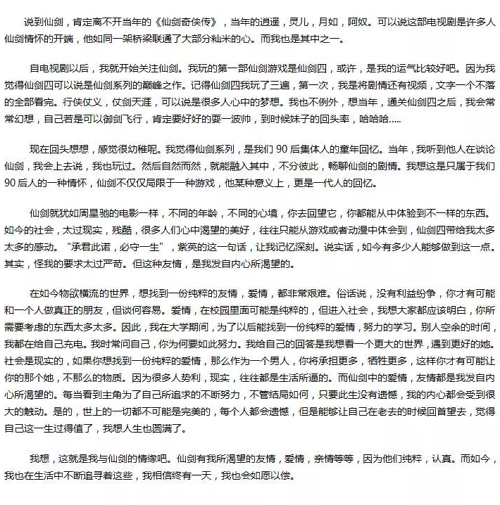 《仙剑五》我与仙剑有段缘,手游官方征文优秀作品展