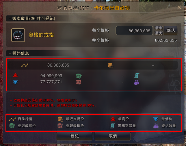 如今,想要在游戏里“赚钱”如果不了解拍卖系统可不行。 那么接下来就请跟随笔者一起剖析下为何“黑色沙漠”的拍卖系统在游戏界中算是为数不多的良心存在。 购买: 玩家想要购买到自己所需的物品,首先需要找到每个主城举牌子的拍卖人员。与她交谈后便可打开相应的拍卖行购买页面。 纵观游戏界,像《黑色沙漠》这样的特色拍卖系统真的屈指可数,很大部分原因是由于:任何玩家都可以通过拍卖行系统,花费游戏银币购买到真金白银的珍珠商品。包含了时装和宠物等,而且价格相当便宜! 拍卖行购买页面(如下图),购买商品可以通过关键词的搜索或者左侧细分品类的查找。 在交易市场页面,可以看到所有物品的市场情况。彩色为市场有货,灰色物品则为暂无货源。 并且每一类商品的市场最高价与最低价,目前登记数量,累计交易量,系统估价等都可以从拍卖页面一一查看。 并且《黑色沙漠》还具有独特的动态经济系统,市场价格会随着货物的供需关系产生不同的变化。 出售: 《黑色沙漠》的定价系统与众不同,因为所有商品的价值都由系统根据整个市场情况与物品稀有程度判定物品价值。(广大屌丝玩家的福音呀,再也不用担心拍卖行的物品被无良黑商把价格炒上天了) 且游戏中的装备大多为非绑定物品。只要其最大耐久为100便可以随时出售。哪怕已经用过也没关系。 如上图售卖页面可见,系统会估算出所欲出售物品的价格区间。最后定价由玩家根据实际情况自己确定。(备注:出售成功的物品商品,系统会收取一定的税金,税金用于城战统治这个地区的工会) 预约与购买: 如果拍卖市场某一样商品非常稀有,但你又非常想要。那么便可以通过预约系统购买,以高于市场价的价格去预约购买相应的物品。确定预约后系统会帮你购买,当然只要保证银行里的余额够便可以了。 但预约购买并不是每一次都会成功的哦!《黑色沙漠》的拍卖行系统为了避免黑商独揽稀有物品的市场库存,把整个拍卖行分为了“预约交易所”与“招标交易所”。当一款商品确认上架期间,系统会随机判定此物品是进入“预约交易所”还是“招标交易所”。 当判定进入“预约”机制后,则由出价最高的买家约得。 而如果进入“招标交易所”,则由所有玩家公开竞拍购买。 公开竞拍的物品,也会严格按照“招标”与“购买”双阶段进行,俗称“BP阶段” 总而言之,《黑色沙漠》拍卖系统属游戏拍卖界中的独特存在,任何玩家都可以公平的买到所需的物品。游戏系统在保证价格随市场不断变动的同时,很大程度上也避免了黑商囤货,哄抬物价的恶劣现象。这足以大大保障了广大黑沙玩家的根本利益。 “人人生而自由,在尊严和权利上一律平等”当今,公平已成为这个社会思想雏形,社会如此,游戏亦然。 了解更多相关信息,请前往http://news.yzz.cn/ku/hssm/ |