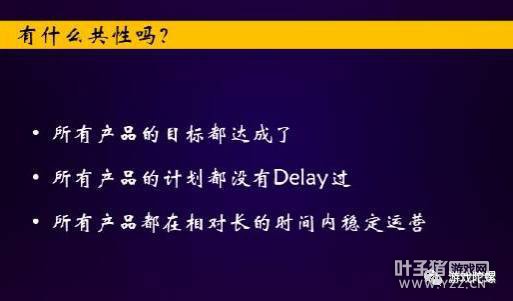 第一、所有产品的目的都达到了。不管是《剑网一》的重构,希望做一个更平稳更稳定的产品,还是《剑侠世界》的融合,把剑侠系列原有的用户向外突破,还是《逍遥江湖》希望在剑侠品牌之外成功重塑一款各项数据达标的新产品,以及《剑侠情缘》手游希望把端游用户转到移动端来为他们提供一款让他们满意并能够长期玩的产品,所有的目标都达成了。 第二点,其实业内有一个大家经常聊到的问题,就是Delay,在这个问题上我可以很自豪的说一点,我们做的所有的产品从来都没有Delay过。这四个产品是这样的,我之前很短的时间做的一个卡牌游戏,那个时候我还是诺基亚用户,完全以小白的状态做一款卡牌,也是完全是没有Delay的,项目的开发周期可以精确到周,版本的周期可以精确到天。为什么会这样?我们怎么做到的?后面会讲到。 第三,所有的产品都在相对长的时间内平稳运营,这个东西我提了很多遍,这是MMO运营的非常重要的一点,我们不希望一个产品爬得很高,然后很快掉下来,我们希望它能够更稳定的运营,只有这样才能够从长线上获得更大的收益。 MMO的世界,成功才是成功之母 MMO到底是什么?如果我们不能了解、分析清楚MMO到底是什么的话,我们怎么能够找到明确的目标?怎么能够控制它每一步不出问题?怎么能够达成我们的预期?怎么能够让我们的团队知道我们到底要怎么样做到它?肯定都是很难的。