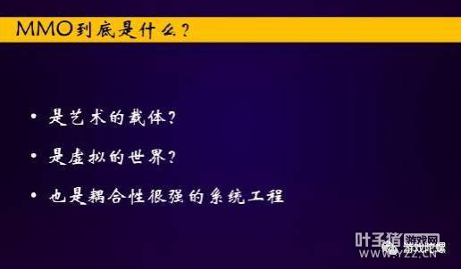 一、MMO的本质就是一个虚拟的世界。现实世界中的规律在MMO中绝大部分都是适用的,我们对现实世界各种规律深入的了解和分析其实非常有助于我们构建于一个平稳的虚拟的世界,这是一个MMO非常重要的组成部分。 二、是艺术的载体。虽然说在MMO这个领域里面目前艺术的表现力还不强,特别是国产的MMO,但是我认为它是对的,当我们温饱问题解决以后,当我们知道怎么做一个能够正常运转起来的产品之后,我相信MMO的品质会逐渐的上升,会更多成为一个承载文化和艺术的东西。 三、从产品的开发角度看,MMO是耦合性很强的系统工程。什么叫耦合性很强的系统工程?MMO里面的各个系统关联性非常强,牵一发动全身,任何一个系统的改动都有可能引发一系列的变化。所以我们经常听到的一句话“失败是成功之母”,在MMO领域可能这句话并不太使用,我认为“成功才是成功之母,而失败不是”,因为一款MMO失败的原因太多了,但是成功的方式只有一个,唯一原因就是你各个方面都做得挺好,没有犯一个严重的错误。 我们看过国内上过的各款MMO之后发现,如果要做成好像真的只有这一个路径。 6大MMO核心设计原则 那既然它是一个耦合性很强的系统工程,当我们设计MMO的时候,我们要按照这个方法去思考,当然不只是对MMO的设计,其实对很多东西都是有指导意义的,我觉得它挺重要的。当然这并不是我提出来的,这是很多年以前西山居的邹老大提出来的,但是直到现在我们仍然在反复的强调它、运用它。