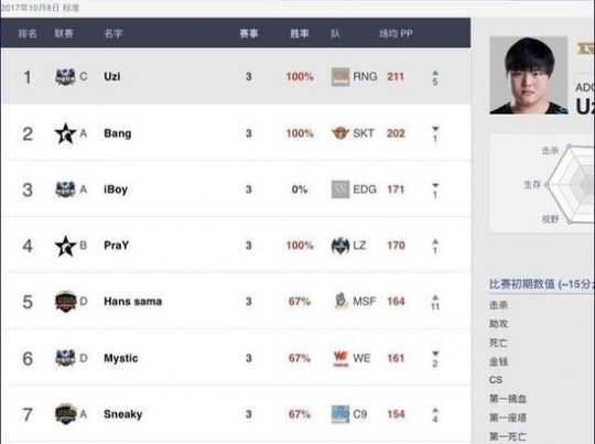 LOLS7小组赛首轮选手排名:RNG霸占五榜第一