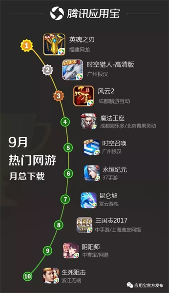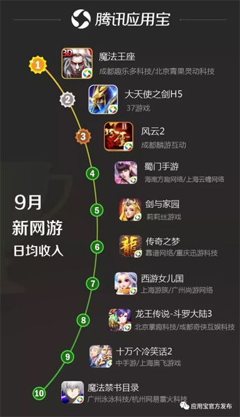 应用宝发布9月手游报告 《魔法王座》登顶新游榜