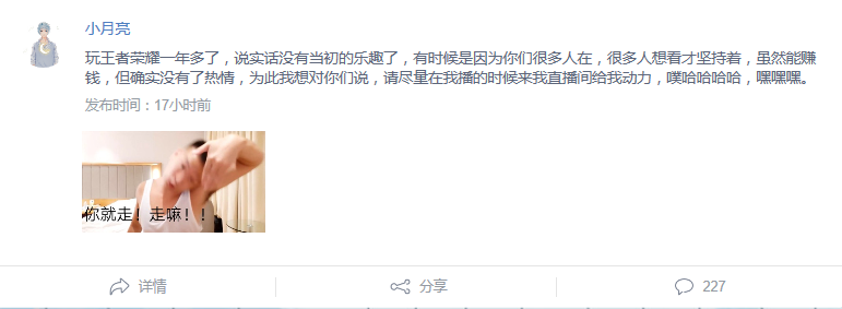 从小月亮晒出的战绩来看,完成荣耀王者百星如果全胜的话,只需要183盘,但是在天美坑爹的匹配机制面前,是不可能有人可以做到的。打破了天美“连胜之后必定连败”的魔咒,小月亮继续冲段位的过程中保持了连胜,最后以只输一场的战绩登上全区第一荣耀王者百星,堪称“最接近神的男人”,仅耗费185场,全程直播让直播间百万粉丝共同见证! 最最厉害的是,这185把的整个上分过程,小月亮几乎只用了露娜一个英雄,为露娜的强势正名,也牢牢坐稳了“国服第一露娜”的位置。行云流水的操作,一言不合就各种越塔强杀各种秀,让观众大呼看的过瘾,不过就没有照顾到对手的游戏体验了。 高处不胜寒,在没有对手的时候,高手总是很寂寞。小月亮在自己的触手空间动态中表示:“玩《王者荣耀》一年多了,说实话没有当初的乐趣了,有时候是因为你们很多人在,很多人想看才坚持着,但确实没有了热情,为此我想对你们说,请尽量在我播的时候来我直播间给我动力”。这话的意思是完成目标没有对手,失去动力了呢! 不过对此小编想对小月亮说,客官别泄气,S9赛季来了,据说要削一削露娜。不破个200连胜,挑战一下露娜削弱的传闻,对得起这一年多犯过的中二病吗? |