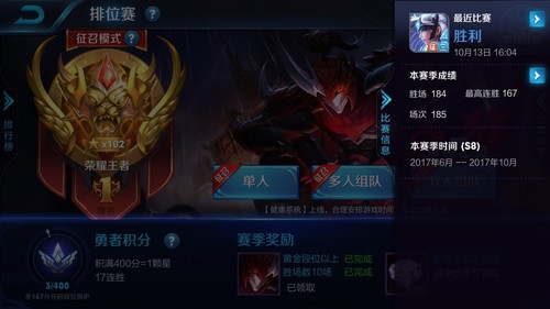 国服第一露娜小月亮再破纪录 185场上荣耀王者百星
