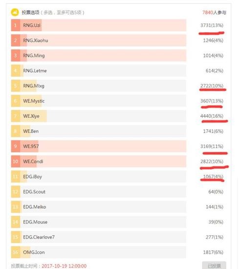 八强赛前各大网站也在进行了小组赛的总结和八强赛的预测,而观众们也从这些比赛里,看出来选手的状态和表现,某网站的网友发起了一则[投票]:你认为S7小组赛表现最佳的5名LPL选手是__?入选的选手包括EDG、WE、RNG三支战队的上场选手,以及最后抽签抽死一支韩国队的OMG中单icon! 到目前为止一共有7840人参与了投票,其中排名第一的选手,不是RNG核心ADC选手UZI,而WE中单xiye,让人非常的意外,虽然说兮夜表现也非常好,但是明显UZI表现更为出色一些,小编也进行了投票,每个人都可以投五票,小编每个位置都投了一票,ADC是UZI,辅助是MING,中单小虎,上单是957,打野是condi!当然每个人都有自己的看法,因此有偏差也是在所难免,不过对于UZI没有票选第一还是有点意外! 到目前为止第一名是兮夜、第二名是UZI、第三名是大舅子、第四名是957、第五名condi,第六名是MLXG,因为EDG表现很差没有一位选手得票超过2000,IBOY倒是拿下了EDG最高的得票数,这也是因为小昭这位新人ADC,在这次表现表现非常的好!不管是打输出还是带推塔节奏,他的表现都是不错,不过最后在面对SKT的比赛里,他的有一个亮牌子的行为,让很多网友诟病,这或许也是一位新人不成熟的地方! 每个人心理的最佳都不尽相同,在观众朋友们心里,S7小组赛表现最佳的5名LPL选手是谁呢?大家可以留言讨论下呦! |