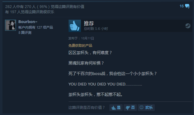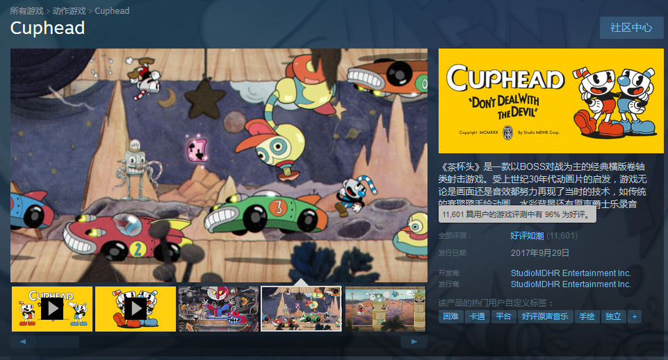 情怀这个词可能在很多玩家心里已经成为了贬义词,谈情怀的游戏也往往被玩家认为是“再圈一笔钱”。而如今就有这样一款名为《茶杯头》游戏,靠情怀俘获了不少玩家, 发售仅三天销量就超过12万套,两周超过100万套,Steam上好评率高至96%。与其说是这款游戏靠情怀成功,不如说是为“情怀”二字做了一次“正名”。 这是一款以BOSS对战为主的经典横版卷轴类射击游戏。玩家在游戏中扮演茶杯头或马克杯人(有单人模式或本地双人合作模式),穿越奇异的世界,收集新武器,掌握强力酷炫招式并探索隐藏的秘密,为还清欠魔鬼的债务而奋战。 游戏中每一个BOSS都有夸张的肢体和丰富的面部表情,让人忍俊不禁。画风近乎完美地还原了30年代美国动画风格,你可以看到人物在静止时夸张抖动的动作,甚至可以看到游戏的画面中不时闪过的老旧电视独有的电流效果,给玩家的感觉就像是在看一部老旧的动画片。游戏中的每一帧画面都是由开发人员完全手绘出来的,可见制作团队在画面上的用心。 在音效上游戏制作团队也是做足了功夫,复古蓝调、爵士、交响曲一应俱全,偶尔还会出现那种老式电视机中才会出现的电流声。配复古的动画风,无疑唤醒了玩家对上世纪的影像记忆。 千万不要被《茶杯头》轻松愉快的画面和音乐骗到了,其实这是一款非常硬核的游戏,游戏的操作难度非常之大。 一般情况下玩家都需要一边按着跳跃和冲刺躲避攻击的同时再按下攻击键进行射击,同时主角初期只有3点血量,游戏中途也没有任何的回复点,这就意味着玩家需要在有限的血量下一次性通关游戏,一旦挑战失败,本关就要重新来过。如果你是那种喜欢挑战难度的玩家,那么相信这款游戏绝对会是你不错的选择。 游戏的每个BOSS都是独立而短暂的关卡,如果会玩的话每个关卡仅需两三分钟时间。所以玩家不会产生太强烈的挫败感,可以比较放松地重新开始挑战,大不了砸了手柄和键盘再来一次嘛! 《茶杯头》作为一款以情怀为卖点的游戏,是非常成功的。从画面、音乐、游戏性都可以看出制作团队是在用心做一款好的游戏。这也充分说明了,真正能让玩家买单的,依靠的不是玩家心中的情怀,而是游戏本身。 |