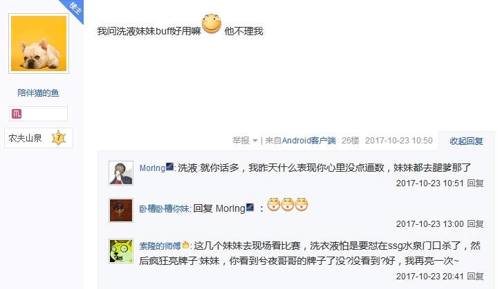 随着《英雄联盟》S7全球总决赛小组赛落幕,即将参加半决赛角逐的四支队伍也已经出炉。接下来,来自LPL的RNG、WE和来自LCK的SSG、SKT将为最后的冠军战资格展开角逐。 大敌当前,整个LPL赛区的战队和官方都非常团结,剩余的两支参赛队伍不仅经常约训练,而且还分享了彼此的战术和想法。例如此前RNG教练组想出来的四保一女警速推阵容,最终由WE拿出来并且打出了不错的效果。据说,接下来两队还会在赛前继续训练,以期摸索出更多实用的套路。 昨日,有位网友发帖表示自己在机场遇到了RNG和WE的选手们,并且与他们沟通、合影了。 据他表示,957和Uzi都非常亲民,丝毫没有架子;而Condi则比较害羞,属于闷骚型: 随后他还小小的调侃了一波兮夜: 最后这位小伙伴还放出了一个猛料,他表示:“虎爷说一定拿下SKT!” 虽然现在这样说难免会给人一种自大的感觉,但这样的说法也向我们证明了选手们的决心。在时隔三年后,LPL终于再次进入世界赛四强,今年可谓是我们离冠军最近的一年,希望RNG和WE能各破强敌,最终在鸟巢会师! |