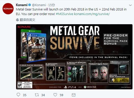 科乐美今日宣布了《合金装备:生存》的发售日期,游戏将于2018年2月20日在北美发售,2月22日在欧洲发售,登陆PS4和Xbox One平台。 《合金装备:幸存》是由Konami发行的一款潜入动作类游戏,是《合金装备》系列作品。本作是小岛秀夫离开后,科乐美所制作的第一款《合金装备》作品,其名称并没有沿用“Metal Gear Solid”,而且是一款四人联机作品。 目前游戏已开启预售,参与预购可获得首日生存包特典。 |