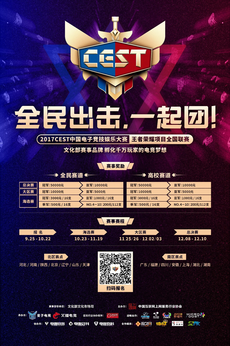 2017CEST《王者荣耀》项目全国联赛报名仅剩最后一天,喜爱王者,热爱王者的玩家们,别错过参与本次赛事的最后机会。全民电竞的时代已经到来,本次CEST《王者荣耀》项目全国联赛旨在“打造全民电竞,全民娱乐”这一个概念,其slogan “全民出击,一起团”简洁明了的诠释了电子竞技中的团队合作与竞技精神!这不仅仅是一场赛事,更是一个拥有情怀、一个实现电竞梦的舞台! 【一场赛事 一个电竞梦】 电竞对于曾经许多热爱游戏的年轻人来说,不仅仅只是一个梦想,更是一个情怀。一群基友一起组团开黑,一起看比赛,一起拥有电竞梦这个曾经属于他们的情怀,因为成长,因为学习渐渐不再游戏,而电竞梦也渐行渐远。然而在这个电竞辉煌的时代,曾经拥有电竞梦的骚年们,不要再压抑你们内心的冲动与渴望,年轻就该放肆一把。 这不只是一场赛事,更是一个面向全国游戏爱好者和职业电竞选手的电竞舞台,同时也是游戏玩家实现职业梦的一个舞台。还在等什么呢,快来一起加入吧! 【各路英雄豪杰们,高额的赛事奖励等你来!】 “第二届CEST中国电子竞技娱乐大赛·王者荣耀项目”报名已进入尾声。这是一场由文化部指导,全民参与,人人皆电竞的赛事,所有热爱电子竞技,热爱《王者荣耀》的玩家,快纷纷加入到这场电竞盛宴中,争夺高达30万元的现金大奖! 【2017CEST赛事《王者荣耀》项目,报名方式】 从9月25日到10月31日期间,所有热爱《王者荣耀》的电竞爱好者均可通过线上线下两大渠道报名参与赛事。线上报名:开放两种报名方式。一、玩家通过扫描海报上的二维码,即可获得报名H5专题,并填写个人或战队信息进行报名;二、玩家也可通过关注“电咖有料”公众号,在微信内进行报名。线下报名方式:可通过“电咖联盟”的全国合作门店进行报名、参赛。希望加入“电咖联盟”的合作伙伴,请关注“电咖联盟”公众号进行合作。 【合作商户可关注“电咖联盟”,沟通加盟事宜】 【参与赛事的玩家用户,则可关注“电咖有料”加入到我们的赛事中来。】 【关于艾播】 北京艾播文化传播有限公司是是一家致力于打造线上“电竞内容”与线下“电竞文化产业链”有机结合的电竞泛娱乐的文化公司。 【关于CEST】 中国电子竞技娱乐大赛(China Electronic Sport Tournament,简称CEST),由中国互联网上网服务营业场所行业协会主办,北京艾播文化传播有限公司承办,是国内首个通过文化部备案的国家级综合电子竞技赛事。 |
