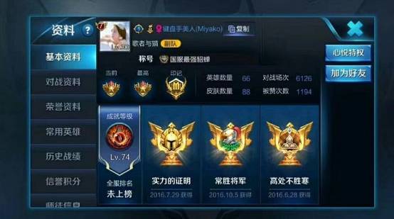 谁说女子不如男?近日,《王者荣耀》一位女玩家的成绩,是狠狠让大家诧异了一把:这个妹子,S3赛季就是最强王者,S4-S8赛季始终是荣耀王者,相当强悍!她被粉丝们亲切的称为“胖奕”,可是她一点都不胖,只是江湖传言,因为一天到晚宅着打游戏,她的体重直线上升,但是事实是,她的身材,是这样的: 此前嗨氏一直被称为“国服第一貂蝉”、“中单法王”,可是事实是,如他自己所说,他只是个娱乐主播,技术一直在退步。但是妹子对貂蝉的爱,每个赛季的常用英雄,貂蝉都是第一个!而且常用英雄全是法师,真真是“中单法王”。貂蝉再怎么被削弱,哪怕曾经的“国服第一貂蝉”嗨氏在比赛中都放弃了貂蝉,妹子用行动告诉大家,貂蝉还是很强的! 四千多场貂蝉,百分之八十的胜率,随后是妲己、芈月、小乔,胜率都非常高,一看这个常用英雄面板,就知道是个萌妹子无疑,全是漂亮女英雄! 姐来展示一下高端操作,键盘手美人miyako拿下国服最强貂蝉称号,几个成就的取得时间,让现在多数的男生高手也自诩不如。王者助手数据显示,miyako总共打了7461场次,其中mvp多达3653个,这个mvp率不要太强,果然是带飞全场的中单。 Miyako相当低调,直播一年多,虽然技术拔尖,却始终默默无闻。她在个人签名中写道“不会巴结人,是风光是落魄我都认”,跟其他妹子一样喜欢小狗,会去各地旅游,高冷女神范儿,光看外表绝对看不出她玩游戏居然可以那么厉害!为女神疯狂打call,期待女神在S9赛季再战荣耀王者,让男主播们看一看女生绝对不是坑,也有技术型女王! |