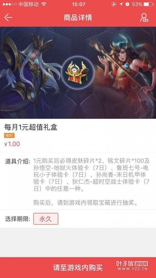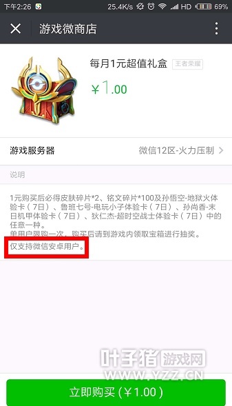 王者荣耀的一元礼盒活动是最受玩家欢迎的福利之一,只需1元即可获得2个皮肤碎片、100个铭文碎片和稀有皮肤体验卡,非常划算。在11月到来之际,一元礼盒活动再次开放,而且这次,似乎并没有限购一个! 跟往常一样,一元礼盒的活动时间只有7天,所以还没买到的玩家记得抓紧时间了。除了在游戏里可以购买一次,其实我们还有两次额外的购买机会!且听小编娓娓道来。 1.微信——游戏微商店 微信的“王者荣耀礼包中心”相信大家都知道,然后我们可以按以下图片的方式再买一次。需要注意的是,“仅支持微信安卓用户”,IOS端的微商店是还没有开放的。 2.掌上道聚城APP——道具商城 然后我们需要下载APP“掌上道聚城”,直接从首页的幻灯处进入道具商城。按照下图的方式,就可以购买第三次!不过,这次IOS端的玩家同样买不了... 补充说明: 小编是用微信登录的,另外根据朋友反映,QQ玩家同样可以买3次,所以快去试一试吧!最后附上这两次购买记录(第一次是游戏里点券支付的): 目测这波腾讯是“亏的想哭”了!不知道这算不算是活动的BUG呢?总之,感兴趣的玩家快抓紧时间吧。 |