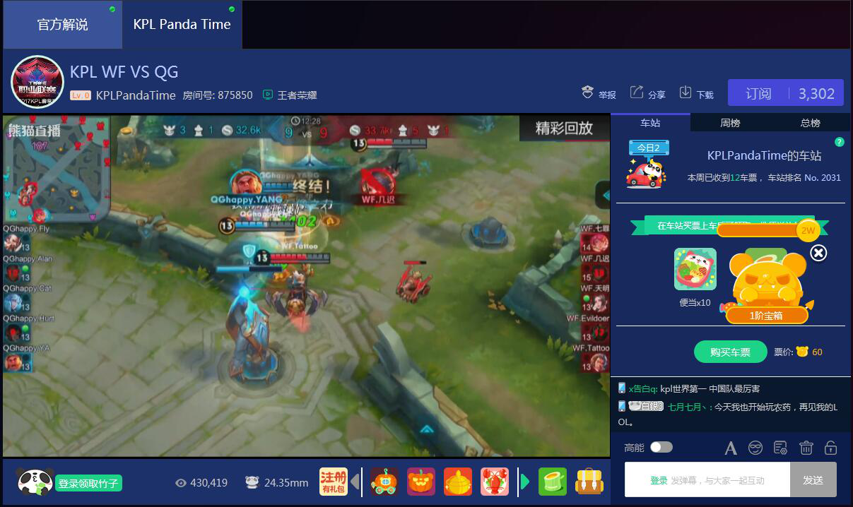 QGhappy十一连胜续写王朝神话 熊猫直播皮肤豪礼相送