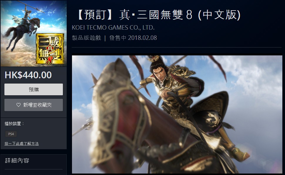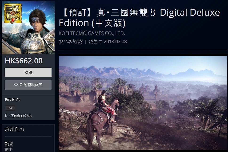 《真三8》中文版上架PSN港服 豪华版662港币