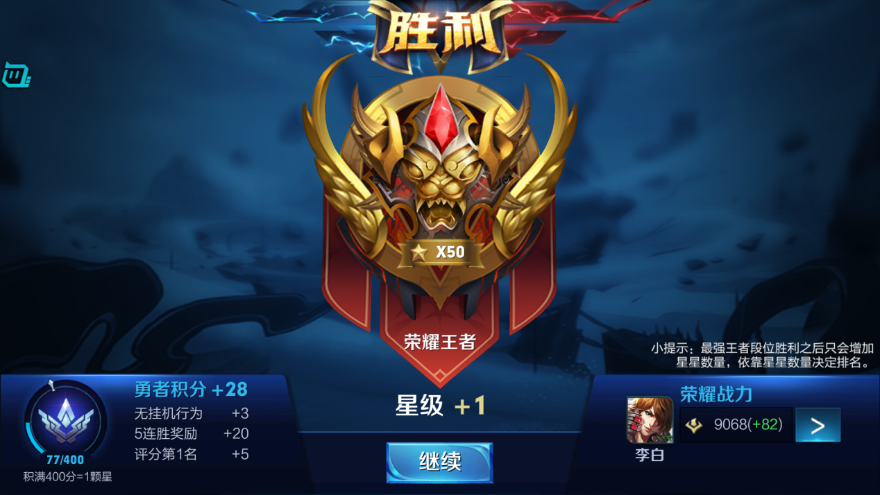 S9赛季第一个荣耀王者50星诞生 第一李白剑仙11天登顶