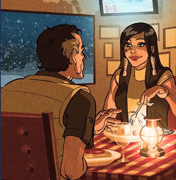 还记得去年圣诞节时,《守望先锋》的官方漫画中和法拉共进晚餐的那个什么大叔么?《守望先锋》的首席编剧Michael Chu在暴雪嘉年华的访谈上就谈到了这位神秘角色的身份。 Michael称,这位坐在法拉对面的神秘中年男子其实是法拉的父亲,名叫Sam。从之前的漫画与喷漆上看,估计也和一样安娜是一名埃及人。 而在今年暴雪嘉年华上公开的《守望先锋》新动画短片中出现的年轻女性也非常引人注意。玩家根据她的发色和手臂上的纹身纷纷推测她是托比昂的女儿。 Michael同样在暴雪嘉年华的访谈上证实了玩家们的这一想法。在动画短片中出现的褐发少女正是托比昂的女儿。在游戏中,托比昂与莱因哈特的关系看起来非常好,所以他女儿和莱因哈特出现在一起也就不足为奇了,只是为什么会留下女儿,托比昂本人又去了哪里? 了解更多相关信息,请前往http://news.yzz.cn/ku/overwatch/ |