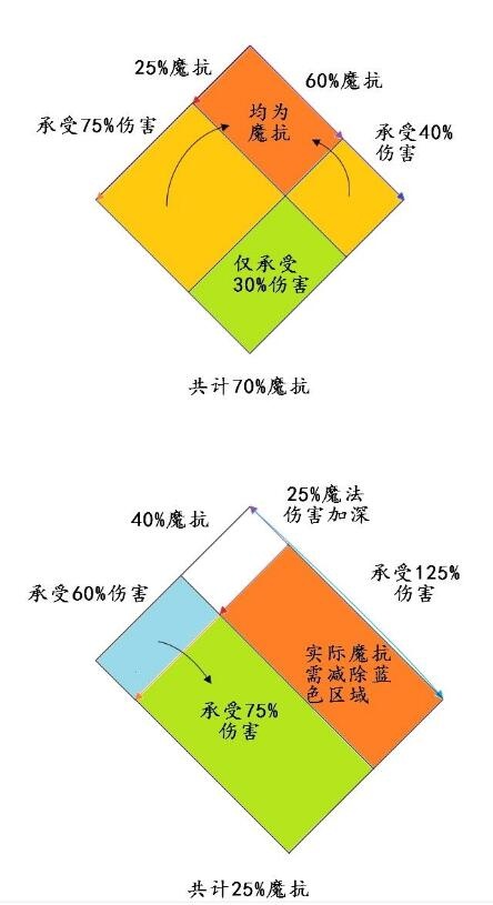 “这PA六蝴蝶就有98%闪避,根本打不中!” “那AM出六笛子也有98%魔抗,绝对的敌法师!” “看我万力屠夫,1500%的状态抗性,根本控不住!” 那么或有人奇怪,这些属性究竟是怎么叠加的,今天我就简单介绍一下。 加法叠加 这是一种最为传统的叠加方式。 简洁明了,也是大家都能理解的增加方式。 包括定值攻击力、百分比攻击力、攻击速度数值、定值生命值、魔法值、定值生命恢复速率、生命恢复速率百分比加成、定值魔法恢复速率、魔法恢复速率百分比加成、护甲数值、攻击距离、技能增强、定值移动速度、百分比移动速度、力量、敏捷、智力、施法距离、等优先的核心伤害调整、等优先的特效伤害调整、定值冷却时间、定值魔法消耗、定值修正的技能效果等属性、数据均为加法叠加。 乘法叠加 这是一种同样经典的叠加方式,一般适用于一些减伤和加伤效果。 对于大多数的乘法叠加,需要注意一点,他们的零点基准为100%,而不是0%。比如 实际计算时应当选用125%/130%/135%/140%。而 应当选用50%/60%/70%(70%/85%/100%)。 包括不等优先的伤害调整对伤害值的加成、所有属性以百分比形式的加成(包括但不仅限于攻击力、生命值、移动速度、生命恢复、魔法恢复、冷却时间、魔法消耗)等属性、数据均为乘法叠加。 补数乘法叠加 这个词可能有些晦涩难懂,但是其本质相当简单明了。因为DOTA2内不少的效果均为此类叠加方式,所以划重点,必考! 可以看到魔抗的计算并不是直接由魔抗决定,而是由承受的伤害决定。由各自魔抗所实际承受的伤害,计算实际的魔抗值。 这种“先进行1-计算算出承受伤害,乘法叠加后,再进行1-计算算出实际魔抗”的叠加方式被我称为补数乘法叠加。 补数乘法叠加的基本公式为:(1-s)=(1-s1)*(1-s2)*(1-s3)…… 包括魔法抗性、状态抗性、闪避落空、克敌机先必中等效果均为补数乘法叠加。 优者生效(反木桶叠加) 顾名思义,反木桶叠加,就是指叠加的结果完全取决于木桶中最长的那根木板有多长。 虽然多个致命一击的来源都会进行结算概率,并判断是否生效,但是最终生效的只有效果最好的那个。 包括致命一击、等优先的格挡(魔法格挡除外)、虚无的魔法伤害加深、伤害无效化、相似/等来源的光环、极少量拥有相同用途的技能(例如重生)等效果均为反木桶叠加。 互相独立 这个我要单独拿出来提一下,因为确实有存在价值。 互相独立意味着这些道具虽然最终效果相似或相仿,但是他们的判定是相互独立,且不会互相影响的。 包括不同类型的吸血、治疗、同时生效的多段技能、不同来源的分裂溅射、以技能形式生效的攻击特效等均为互相独立。 了解更多相关信息,请前往http://dota2.yzz.cn/ |